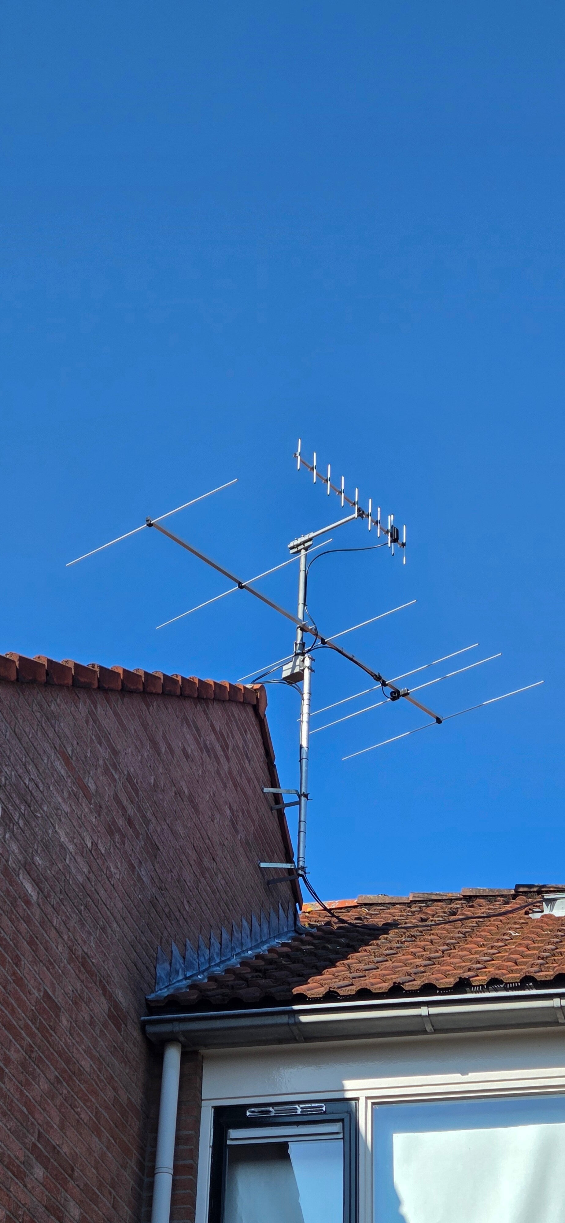 6 Elements antenne voor de 3.5 meter band 84 t/m 87.4. En daarboven een 10 Elements antenne voor 70 cm (400 Mhz.)